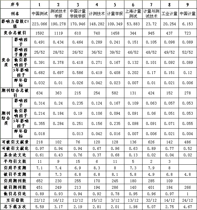 根據(jù)2015年《中國學(xué)術(shù)期刊影響因子年報》(自然科學(xué)與工程技術(shù))統(tǒng)計,《中國測試》雜志在“TB工程與技術(shù)科學(xué)基礎(chǔ)學(xué)科”內(nèi)同行期刊評比中,再次名列前茅。