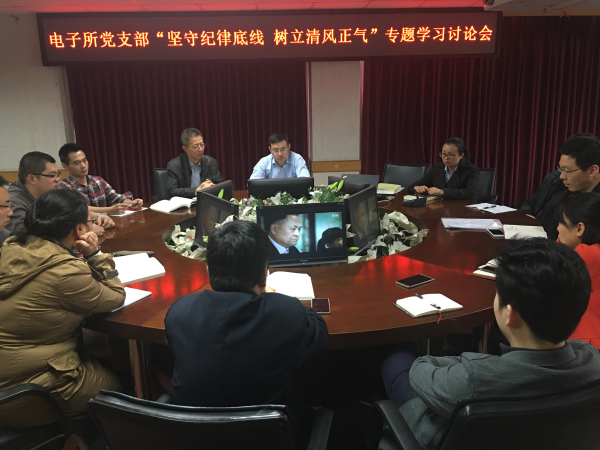 10月24日,電子研究所黨支部開展“兩學一做”第三專題學習討論會,黨支部書記楊春生同志主持會議,全體黨員參加學習。