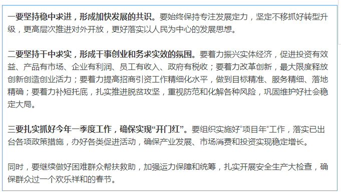 會議強(qiáng)調(diào),省政府各部門要認(rèn)真貫徹落實(shí)中央和省委經(jīng)濟(jì)工作會議精神,切實(shí)抓好今年各項(xiàng)重點(diǎn)工作的落地落實(shí)。