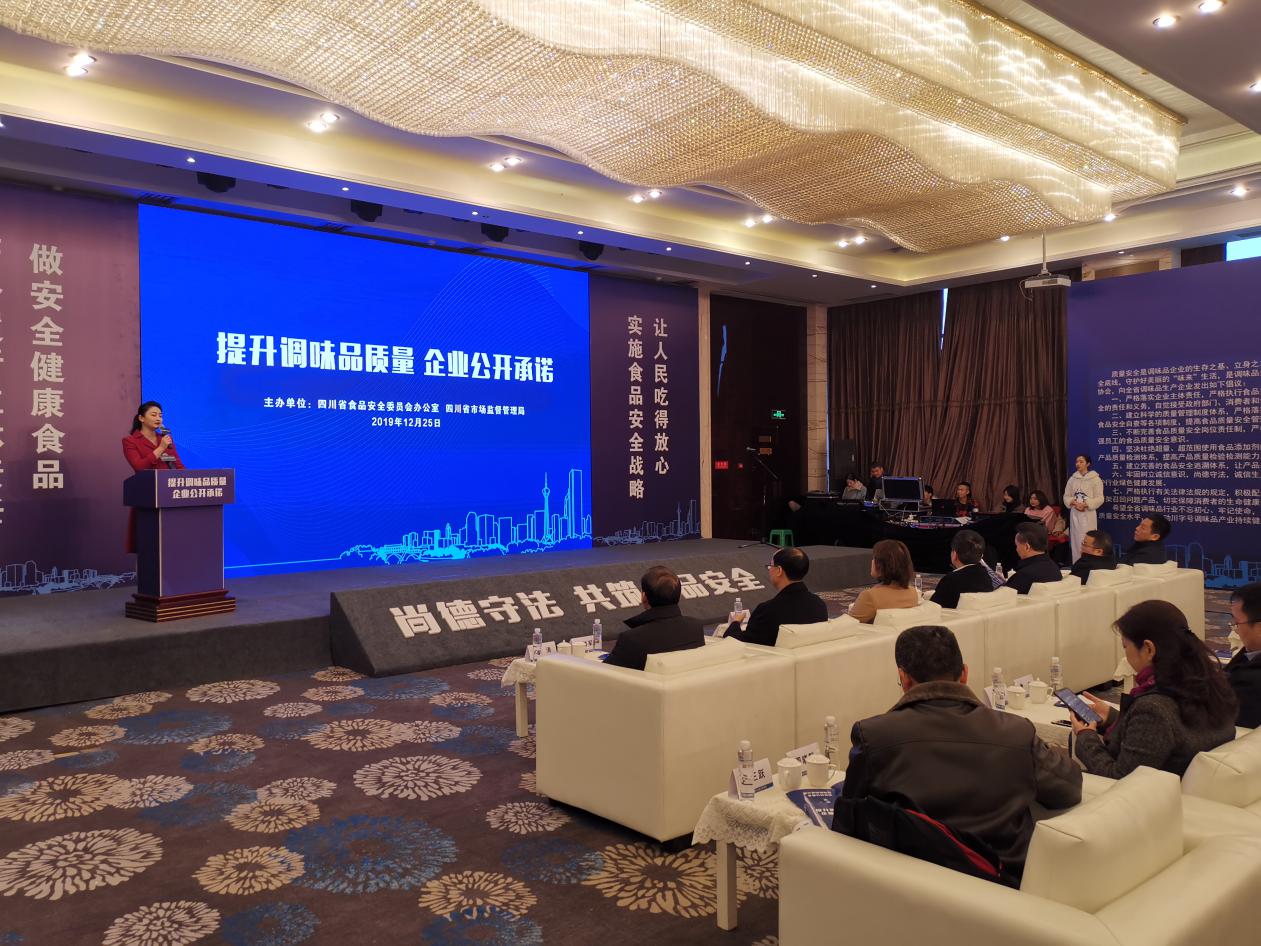 2019年12月25日,四川省食品安全委員會辦公室和四川省市場監(jiān)督管理局在成都共同主辦“提升調(diào)味品質(zhì)量安全企業(yè)公開承諾”活動。此次活動旨在進一步推動企業(yè)落實食品安全主體責任,提升川產(chǎn)調(diào)味品質(zhì)量安全。省市場監(jiān)管局局長萬鵬龍,副局長周傳軍,省經(jīng)信廳副廳長馮錦花等領導出席了活動,全省各地市州市場監(jiān)管局,省人大、省政協(xié)、省食品行業(yè)協(xié)會、全省調(diào)味品生產(chǎn)企業(yè)、消費者企業(yè)、食品檢測機構及媒體代表共180人參加了本次活動。陳旭東副院長與質(zhì)管處和生物所負責人代表我院應邀參加了此次活動。
