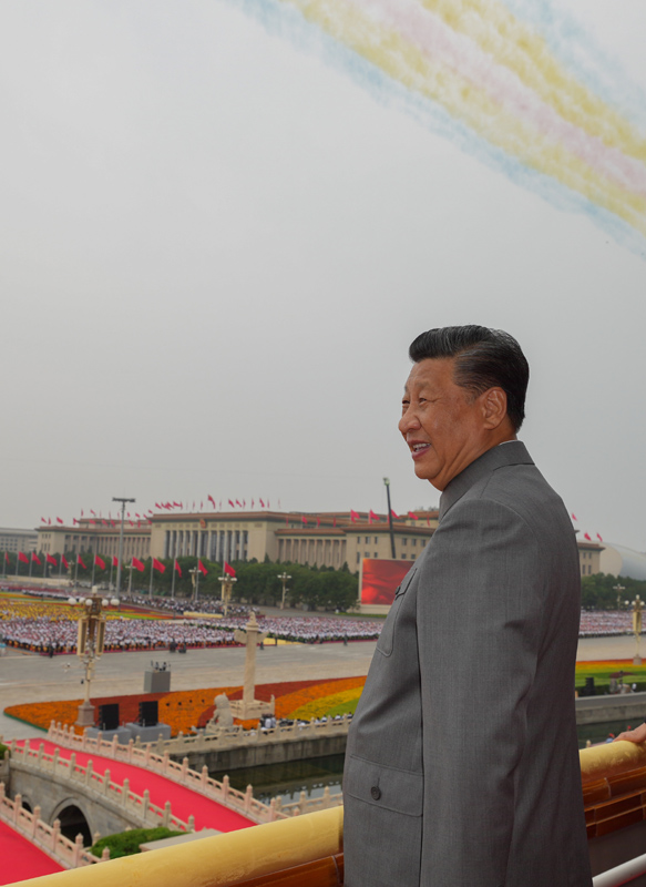 7月1日上午,慶祝中國共產(chǎn)黨成立100周年大會(huì)在北京天安門廣場隆重舉行。中共中央總書記、國家主席、中央軍委主席習(xí)近平發(fā)表重要講話。這是習(xí)近平在天安門城樓上。新華社記者 李學(xué)仁 攝