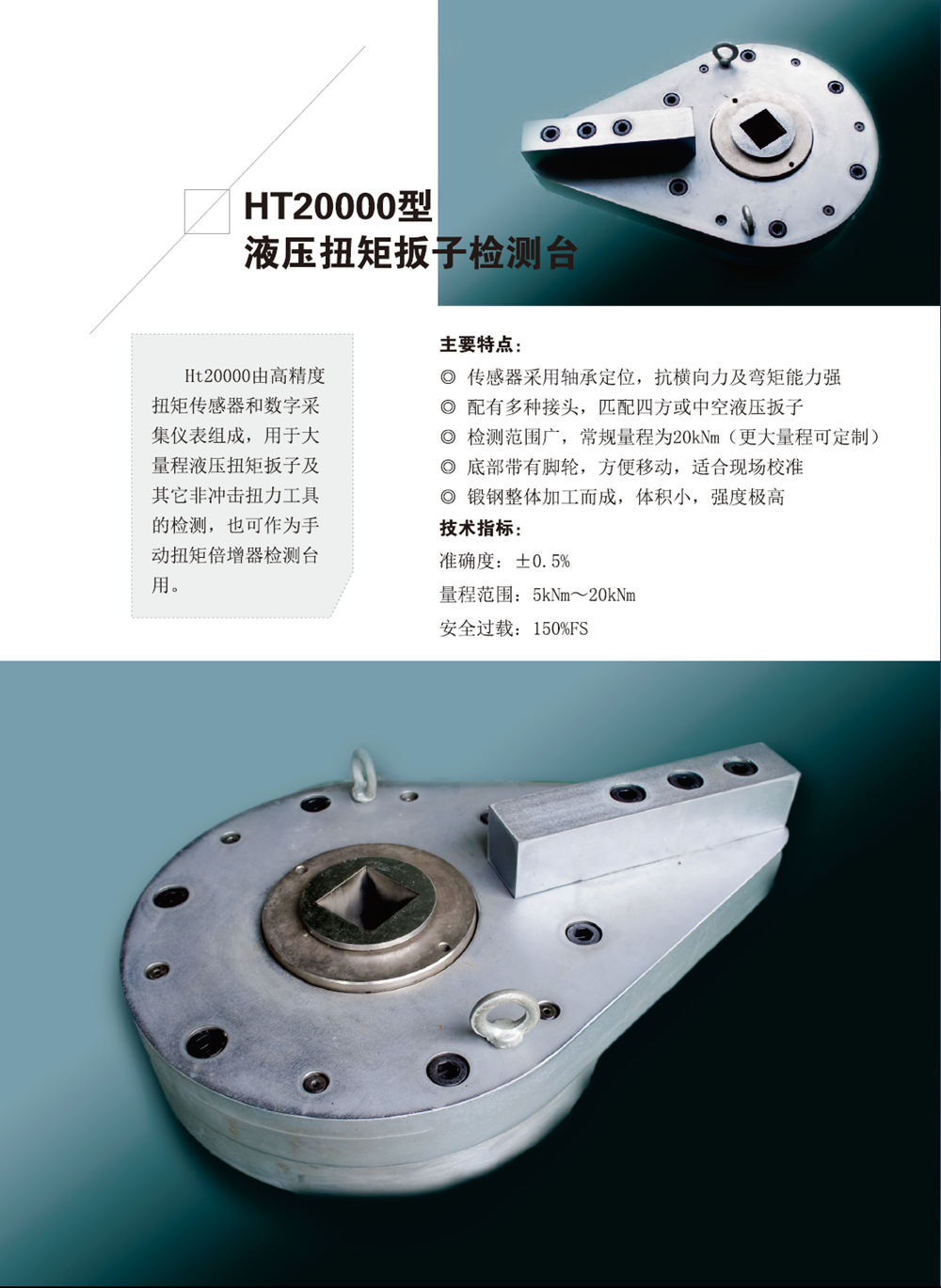 裝置由高精度扭矩傳感器和數(shù)字采集儀表組成,可用于大量程液壓扭矩扳子及其它非沖擊螺栓擰緊機等的檢測。